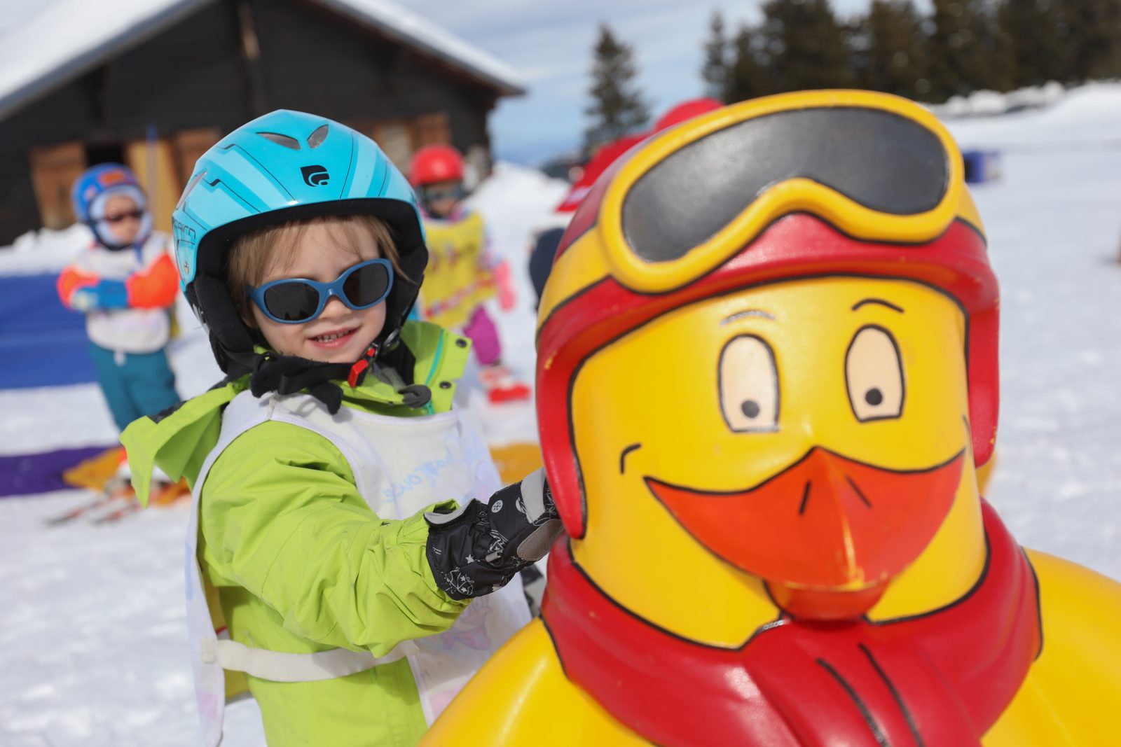 Vos enfants découvrent le ski en groupe dans un espace sécurisé et de manière ludique.