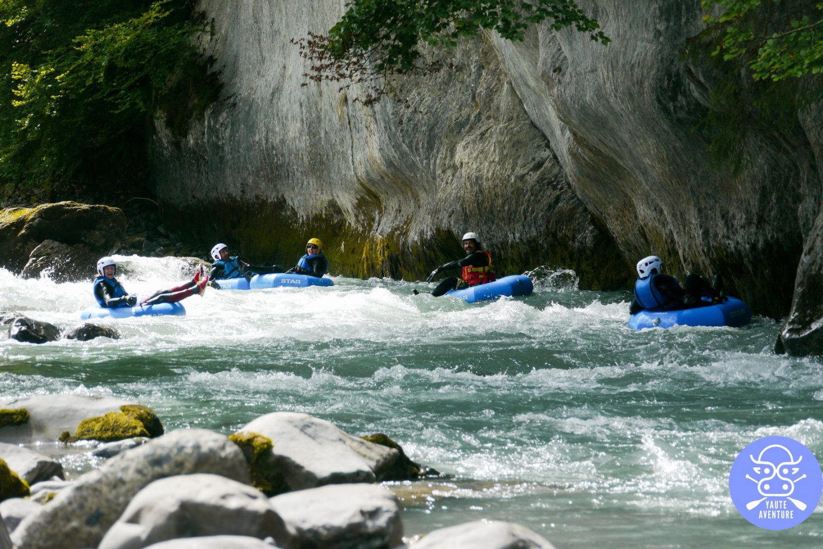 Il s'agit d'une embarcation solo qui vous permet d'évoluer dans les rapides du Giffre dans votre propre embarcation, accompagné d'une moniteur tout de même qui vous enseignera comment vous diriger dans la rivière dans une bouée gonflable renforcée (comme un raft). Aucune expérience préalable n'est nécessaire pour pratiquer le tubing, c'est une activité très intuitive et ludique qui vous permettra de découvrir les décors de la rivière Giffre sous un tout nouvel angle de vue, assis dans la rivière. L'itinéraire commence juste à la sortie des gorges de Tines, le Perret et à partir de là il ne reste qu'à flotter jusqu'au pont de Samoëns. C'est une activité idéal pour les amateurs de rafting en quête de nouvelles sensations.