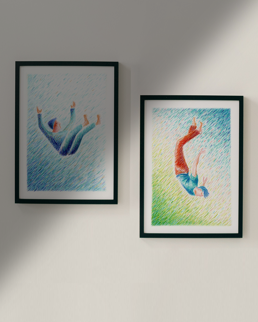Applied in light touches, her strokes generate a vibrant, almost pulsating use of color. Her practice combines watercolor enhanced with colored pencil and acrylic on canvas.